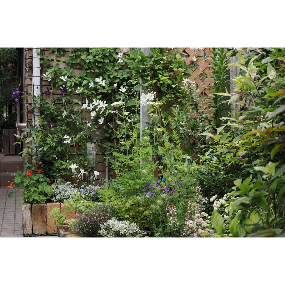 家の壁に絡ませていたクレマチスも盛りが過ぎてしまい、本来の花の少ない箱庭に戻ってきた感じです。