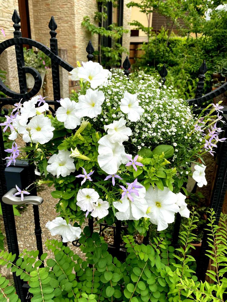 5/22の投稿ではペチュニアばかりが目立っていたけど、イソトマの薄紫が優しく寄り添っています💜🤍💚