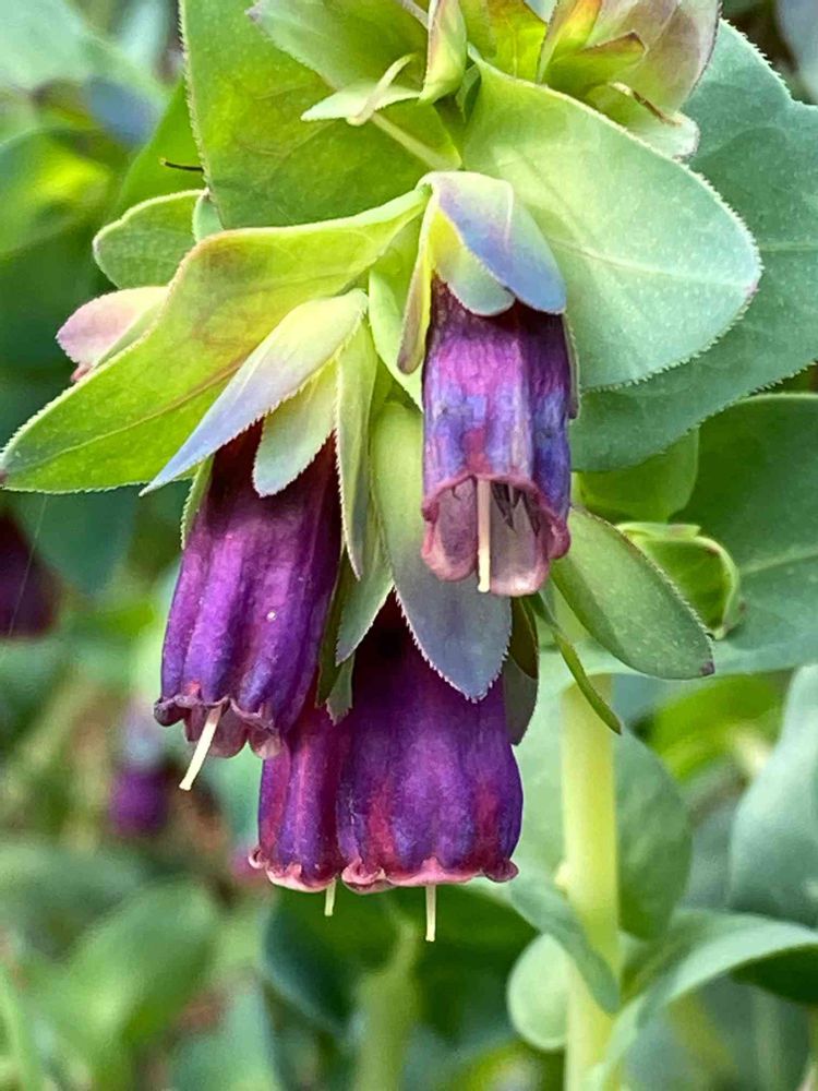 セリンセ・マヨールは、シックな雰囲気のする人気の一年草です。最近は切り花としても流通しています。基本種は花が黄色の種ですが、苗としては紫色の花の方が流通量が多いようです。春になると茎を伸ばし、茎先に筒型の小さな花を下向きに咲かせます。
