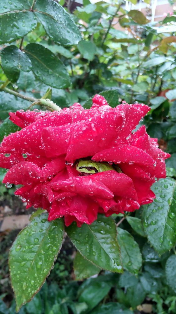 🐸って絶対に赤い薔薇が好きなんだと思います😅