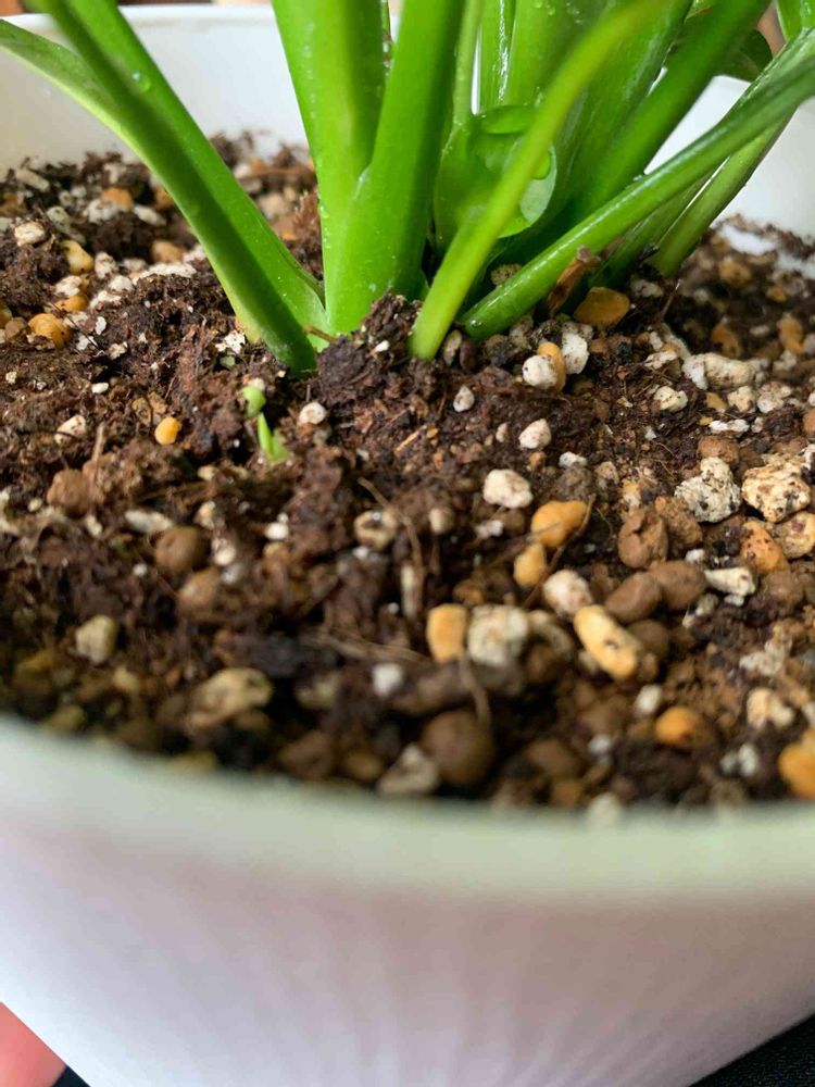 スパティフィラムさんの根元にチビちゃん???Σ( Д )ﻌﻌﻌﻌ⊙ ⊙