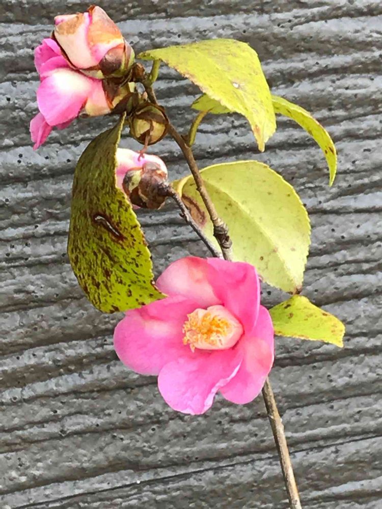 匂い椿の古都の香り。確かに良い香りがかすかに。400円の小苗を秋に購入し大雪にさらした為弱々しいお姿。次のシーズンこそは立派にしたい