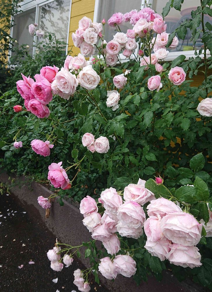 ビエドゥー🌹もプリケンちゃん🌹もたくさん咲いたのに、花散らしの雨☔