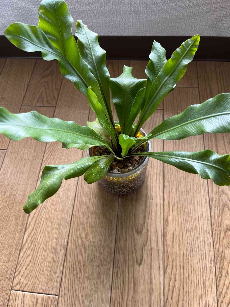 真ん中に茶色いもじゃもじゃのある観葉植物、、、