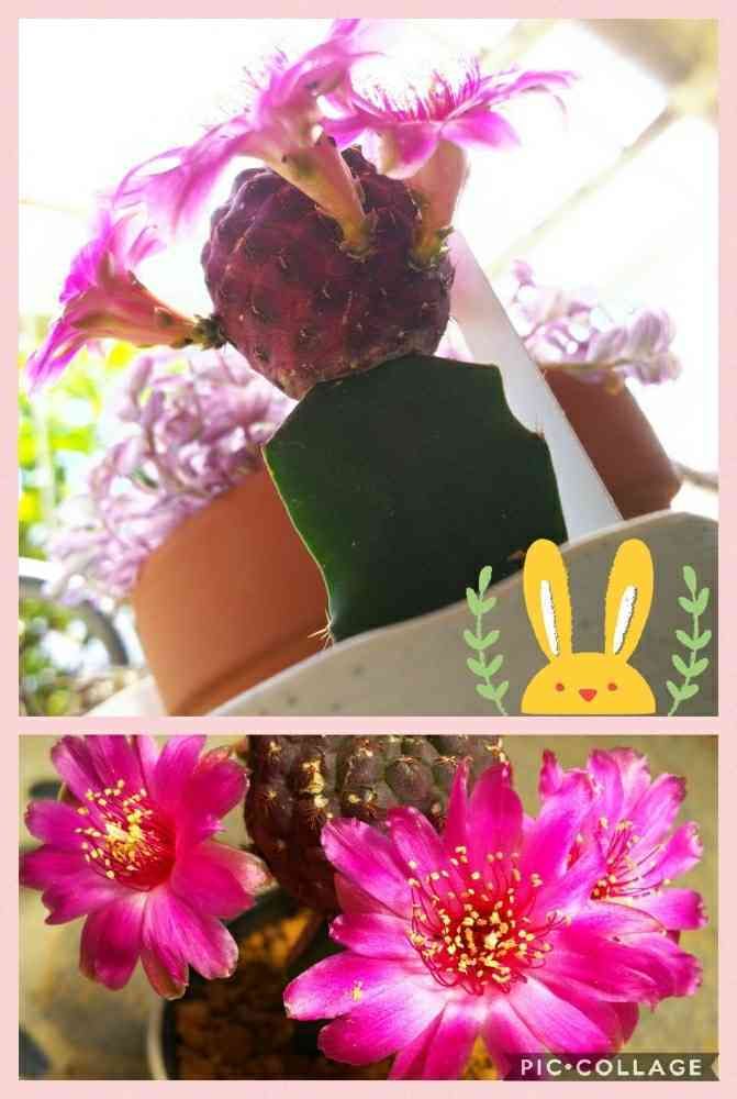 このサボさん、接木してる上の部分が既にお花みたいな面持ちなのに、こんな可愛いお花咲くんだぁ(♡ˊ艸ˋ)♬*豪華じゃね~😍💕ヒントニー、今朝1輪咲いたぁ😊🙌