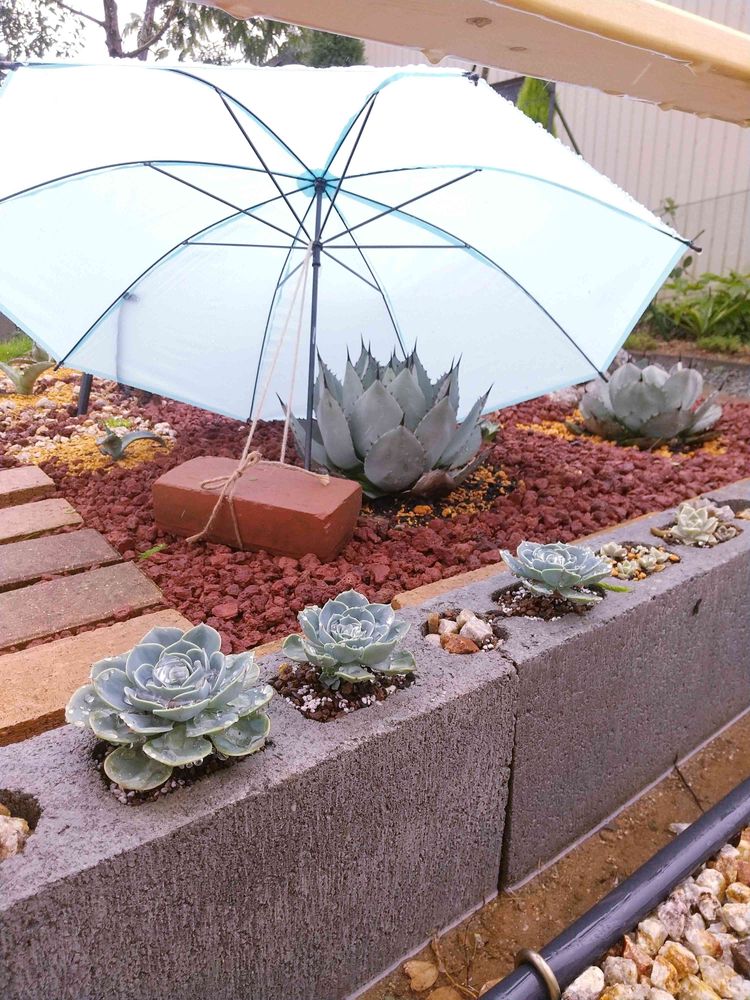 傘もブロックの穴に多肉もナイス😆👍✨です❣️