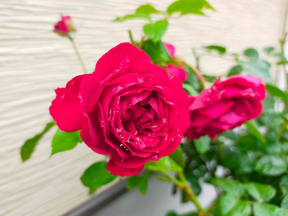 写真の薔薇は、ディープボルドー🌹4月末に咲き始めてから、ずっと花が咲いています😊