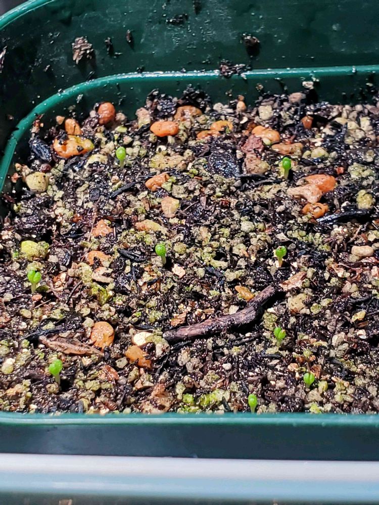 花の綺麗なクイナリアや、太くて白いパピラケアがもてはやされる中で、今一マイナーなグリセアの種子を蒔きました。今季採種したての種子なので、発芽率も良く19/20粒❗