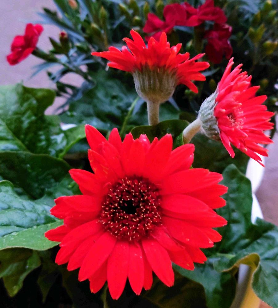 ベランダの真っ赤な「ガーベラ」🌿❤️