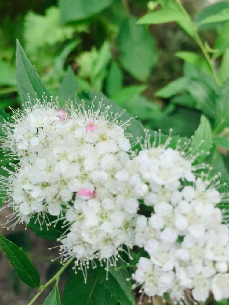シモツケの花は、キラキラして可愛い花ですよね❣️ うちのは、白ですが、ライムグリーンの葉が好きで、地植えしています。低木で手がかからず、この時期には、咲いてくれる爽やかな花木ですネ。