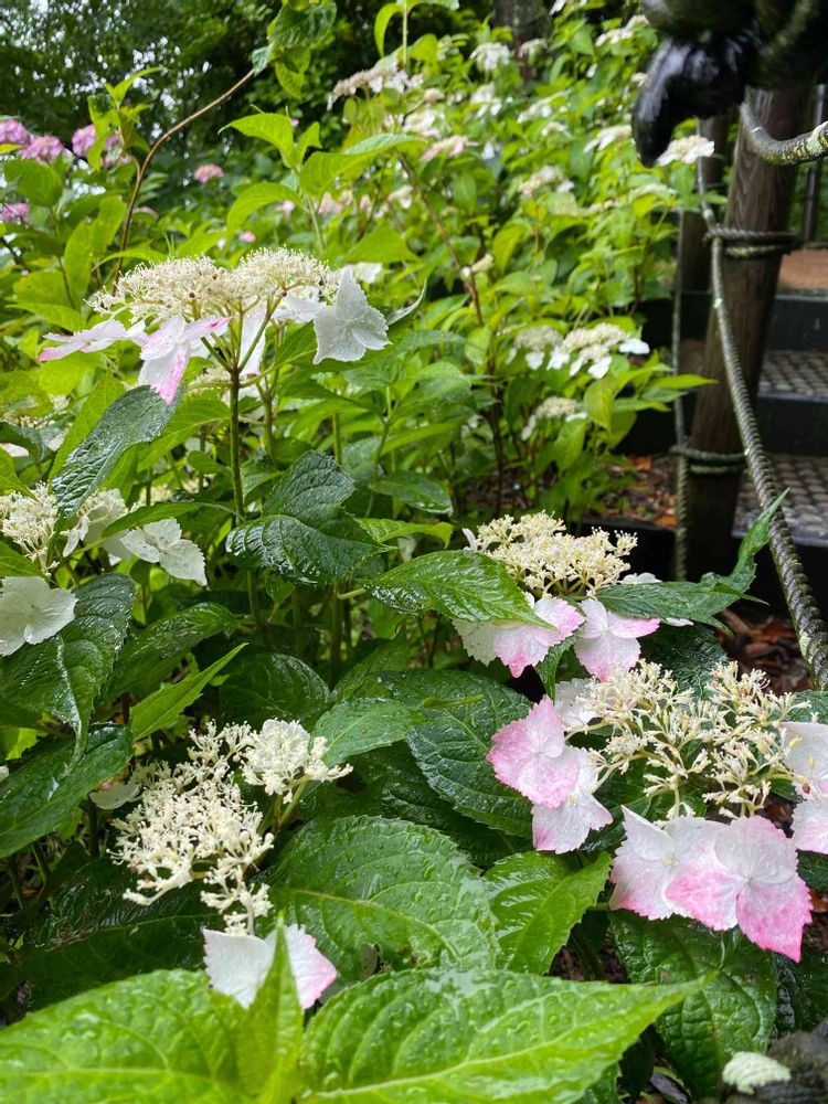 この紫陽花は山アジサイの紅"くれない"のエリアですね。これから赤く色づく前の淡いピンク色でした🤍💗🤍😊