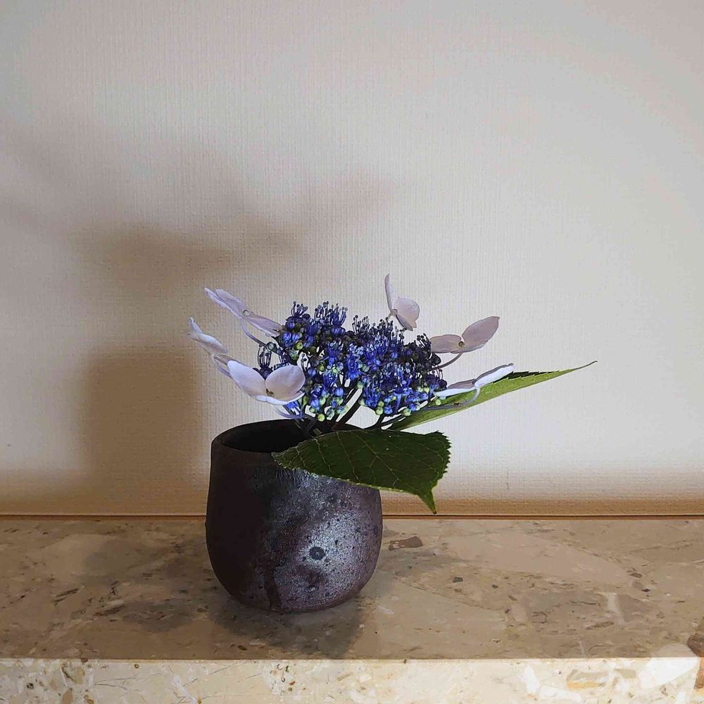 昨晩、酒を呑んだうつわに紫陽花をいける。