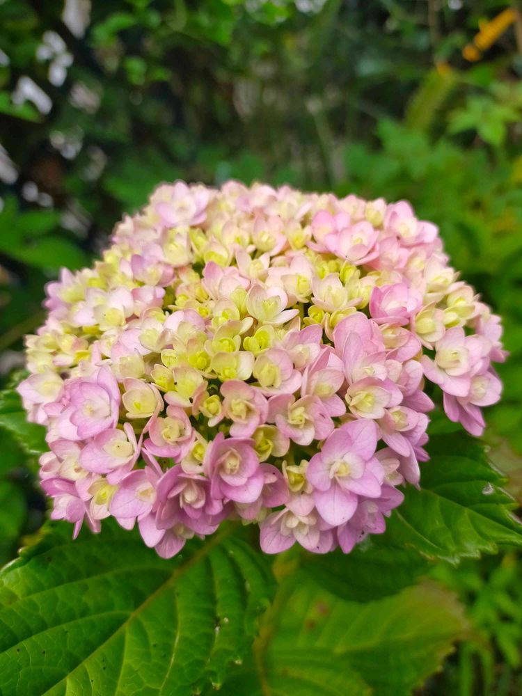 ピンク色に黄色味が素敵な紫陽花