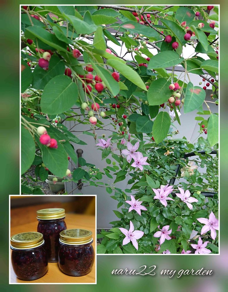 naru22さんの小さな庭,ジューンベリー,クレマチス ハーグレイハイブリットの投稿画像