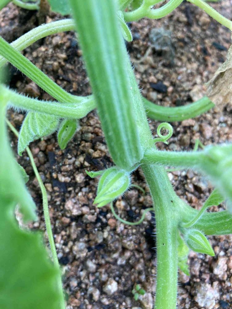 庭の片隅の家庭菜園でプリンスメロン🍈の赤ちゃんにやっと出会えました。甘いのが出来ますように❣️待ち遠しいな〜💕💕