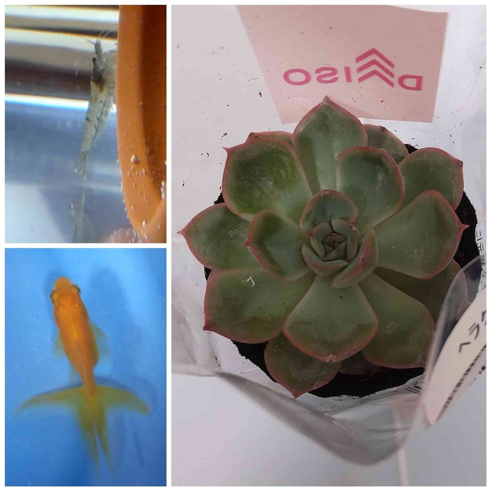 ヘラクレス、ミナミヌマエビ(子供たちの)、黄金魚(ずっと欲しかった~)