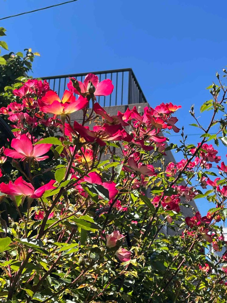 青空に真っ赤なカクテルさん🌹が素敵ですね😍