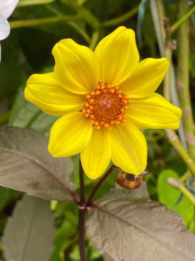 ☘️ダリア[ブラックナイト]☘️.....シックな銅葉が力強く広がってきたら、くっきりはっきりとした黄色いお花が咲きました✨🌼🌼🌼✨💕