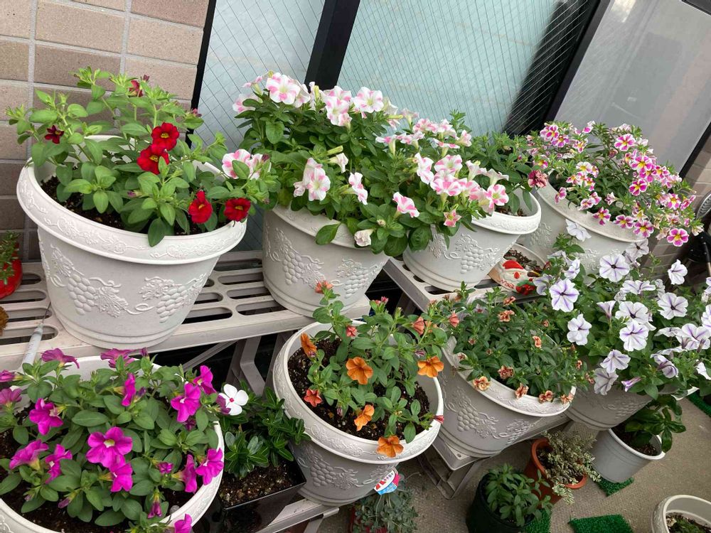 でも取り敢えずサフィニア&カリブラコア集合〜📸