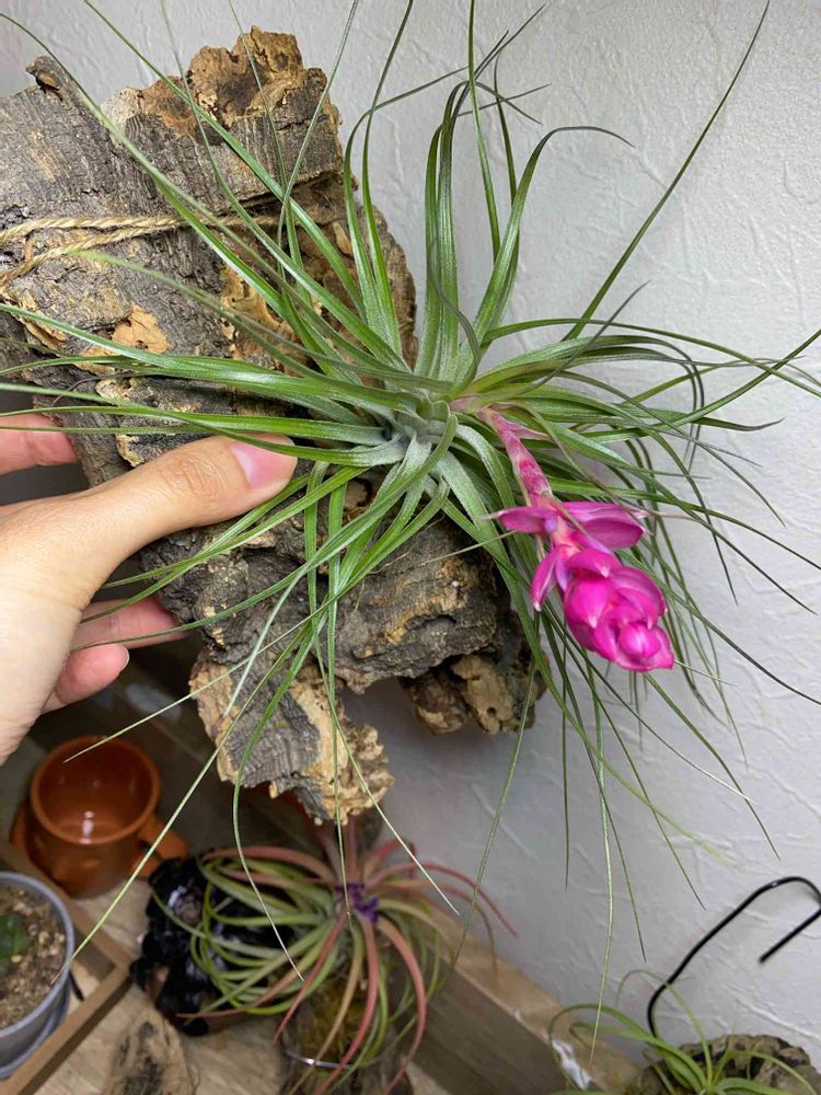 チランジア・ストリクタの花、どんどん赤くなっていきます....最初は白っぽくておとしやかな花だなーと思ったのに、無加工でこの鮮やかさはすごい...