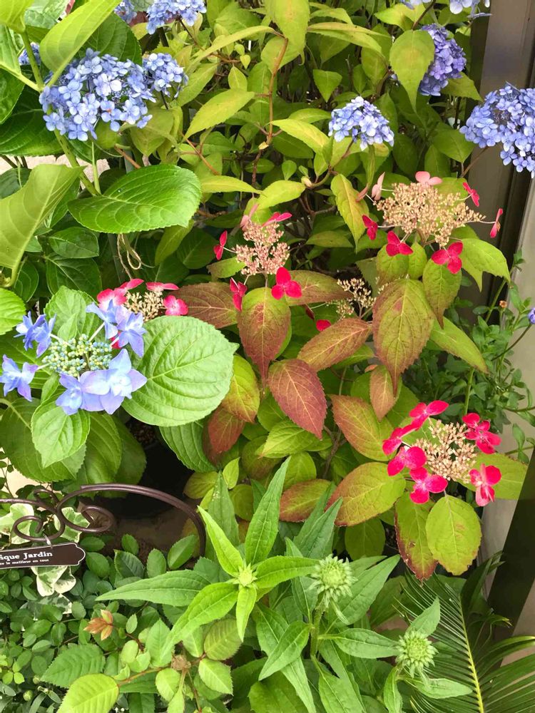 太陽の日差しを浴びて真紅になるヤマアジサイ♥️