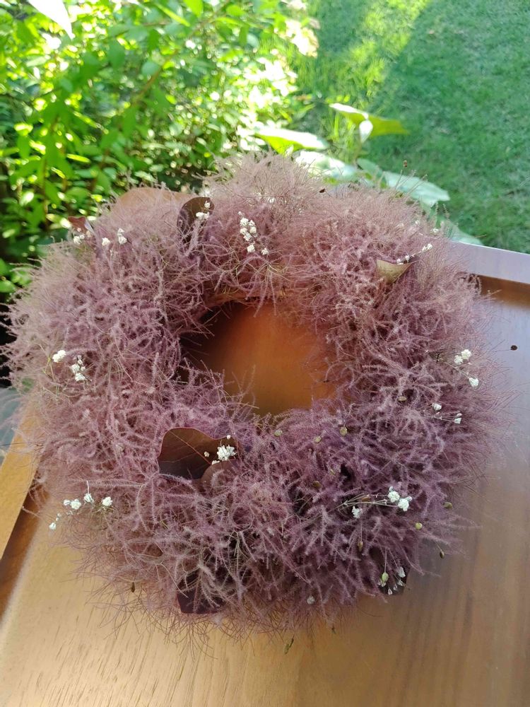 念願の我が家製のスモークツリーで、リースができました。🎉🎉