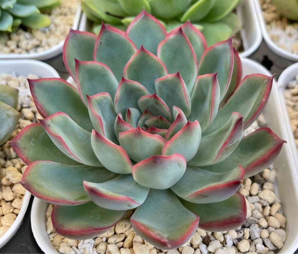 エッジの赤が可愛くて多肉棚で目を引きます☺️