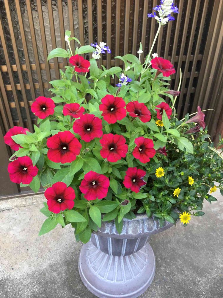 寄せ植えしたMEIKOペチュ、サンビタリア サン!サン!サン!も元気に咲いてくれています💕後ろに2年目のブルーサルビアさんがビョ〜ンと伸びてきました😅💕💕