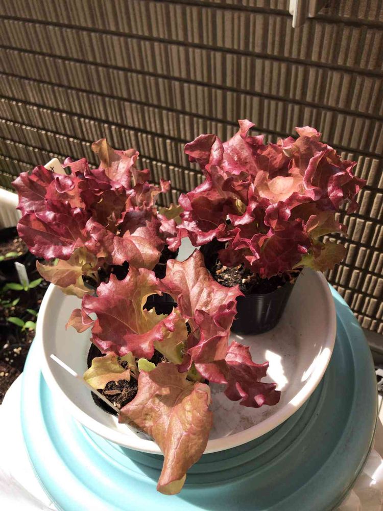 まだポリポットで待機してプランターに移せない種から育てた待ちサニーレタス達😅