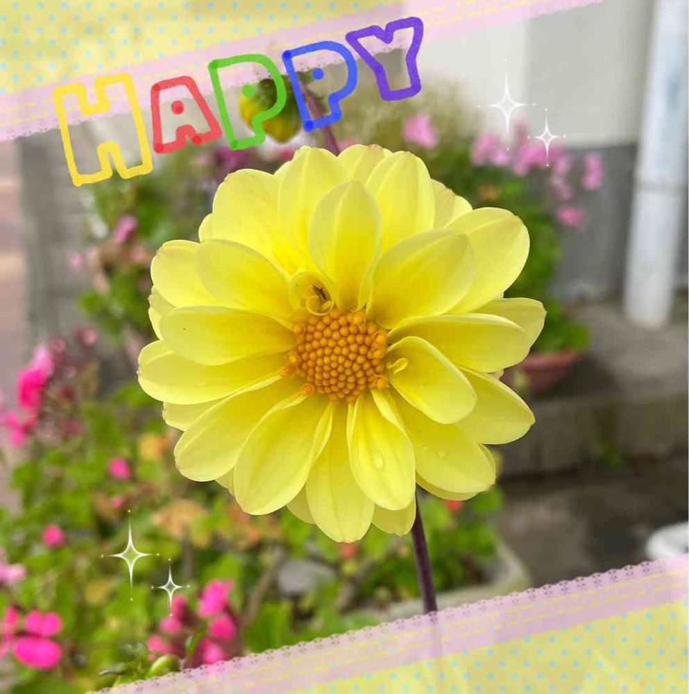 黄色の、可愛らしい、ダリアですネ!