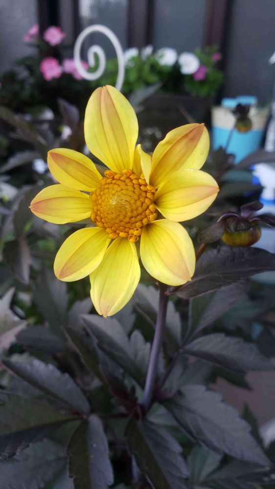 銅葉、黒い軸に黄色のお花🥰