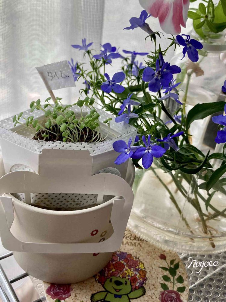 ハーブのタネは細かいけど🌱ちゃんと双葉で出てくれて、嬉しいですよ💕