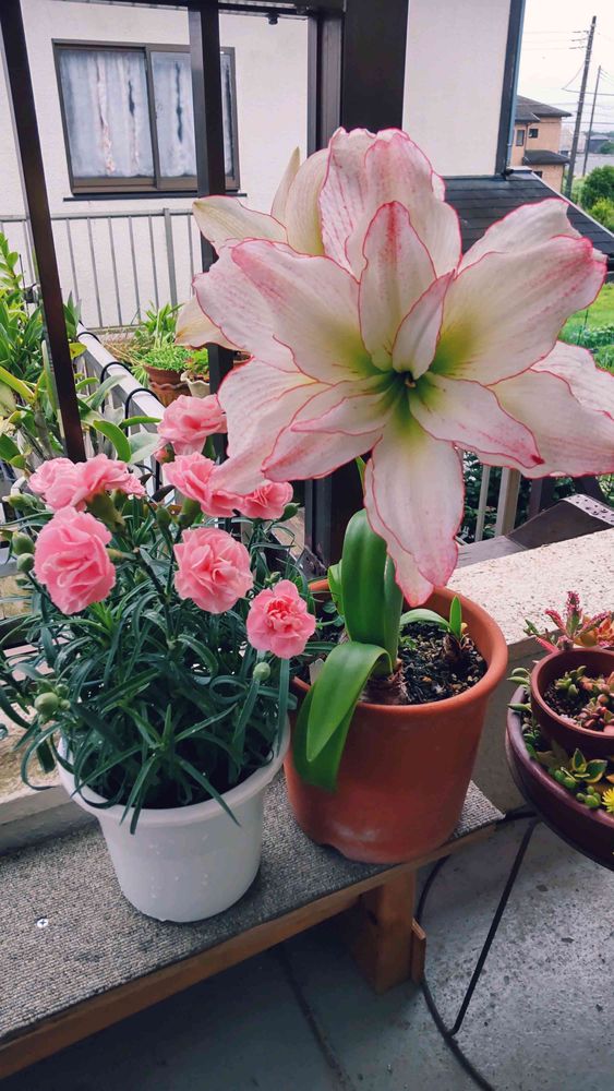 バルコニー/ベランダ,アマリリス,カーネーションの投稿画像