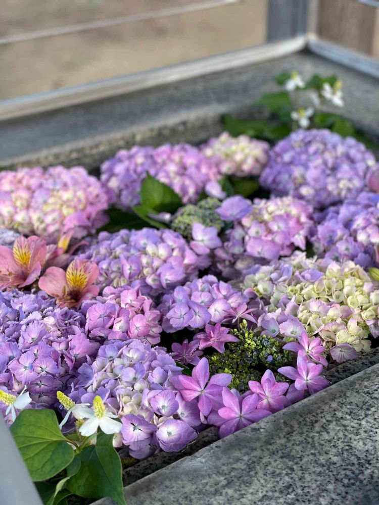 紫陽花の花手水に癒されました☺️💕