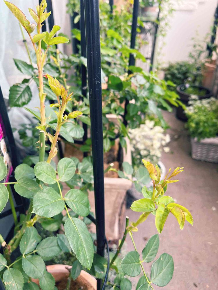 🥀ポアールさん。こちらも元気に伸ばして二番花の準備?を始めています😊