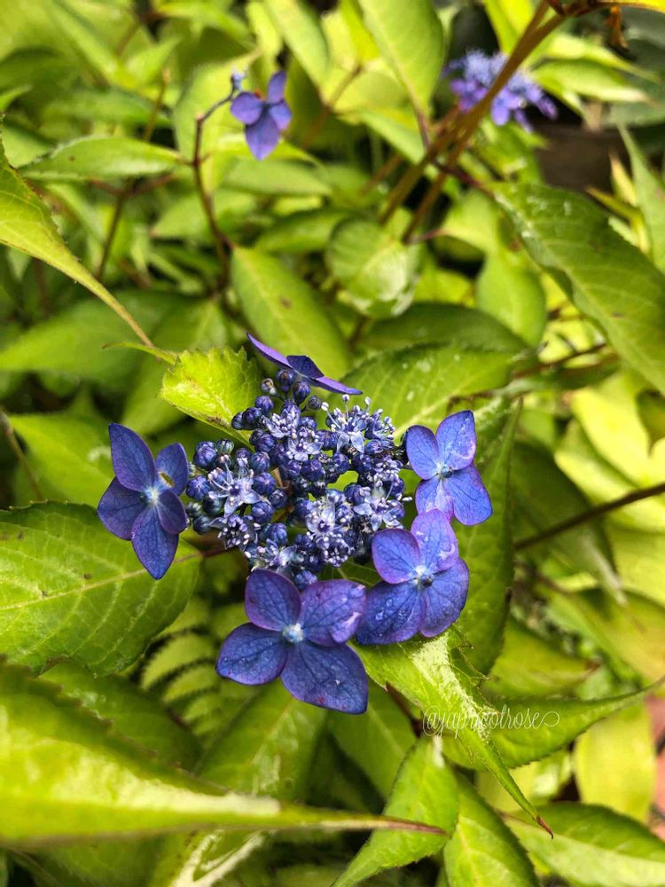 ヤマアジサイ藍姫は花が少なかった上に雹にやられて今年はこれだけ😢