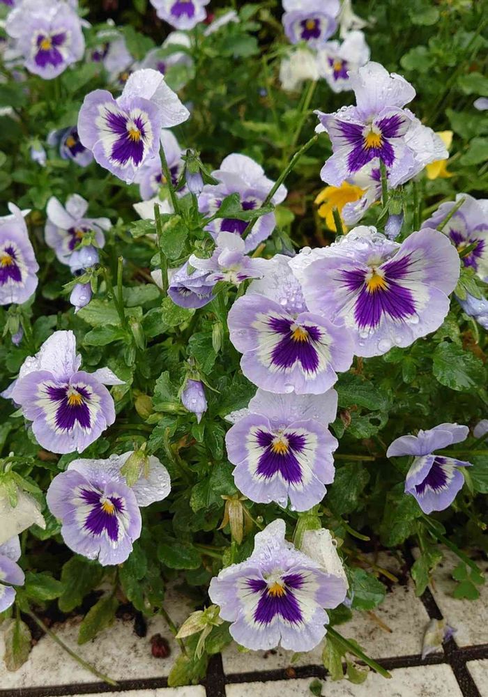 まだ元気に咲いている薄紫色のパンジーさん。雨に濡れて雫がキラキラしていました✨💧✨