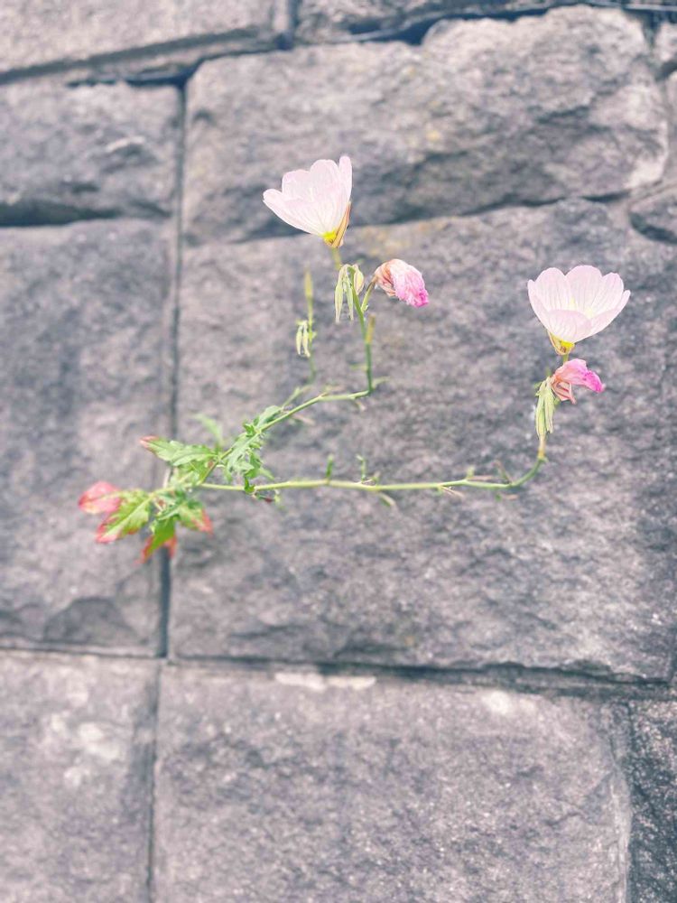 石の隙間から月見草の仲間が咲いていたよ☺️