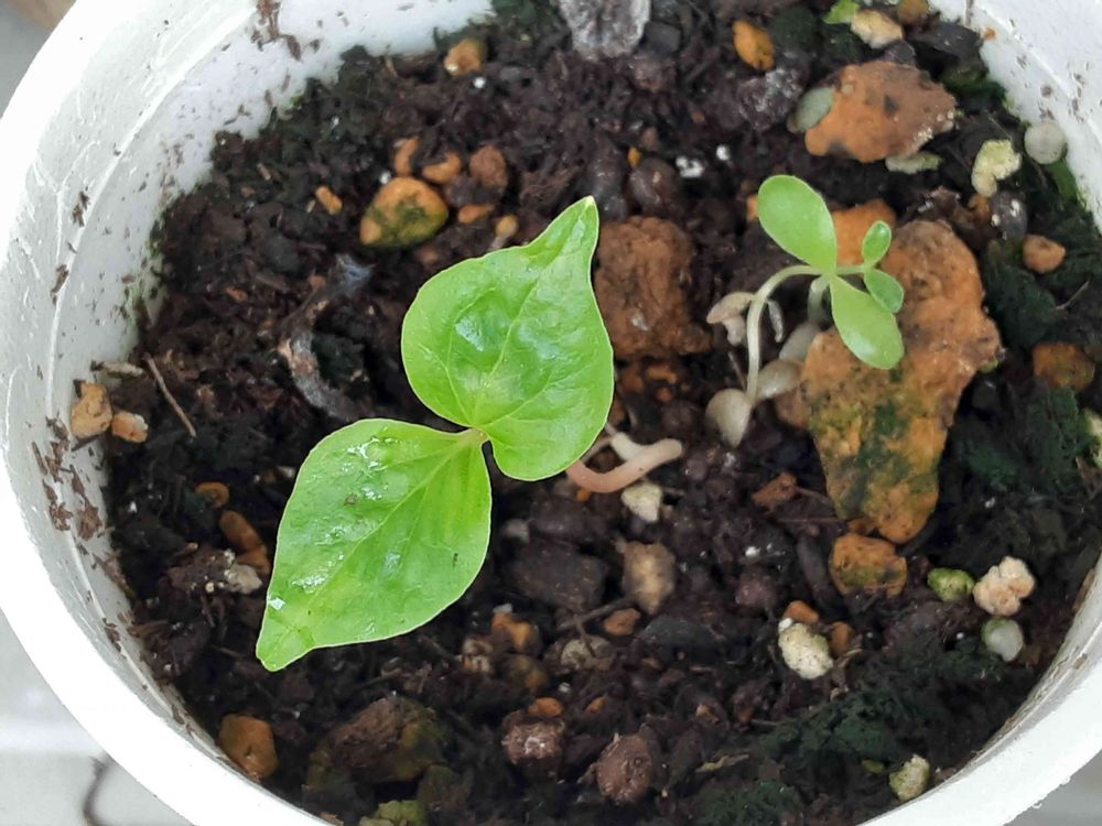カップで育てるパクチーだかパセリだか?時期が外れて芽が出なかったその土へ、フルーツお得セットに入っていた蒲萄を食し種をインしておいた。錦蝶のこぼれ芽だろうと思ったけど、違うみたい。