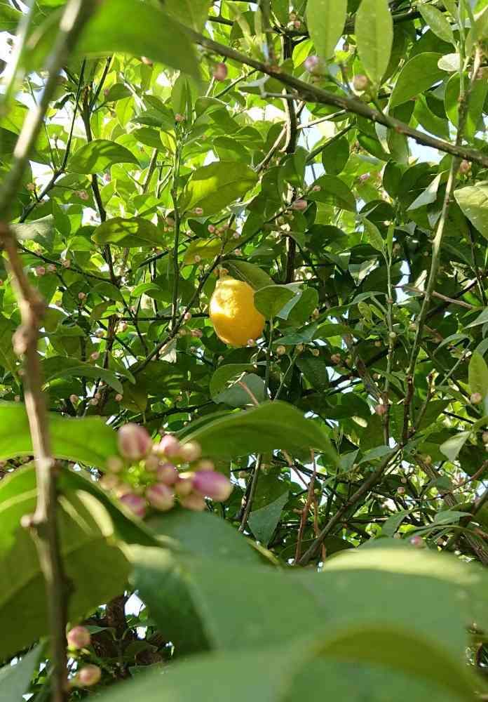 レモンの花はまだ蕾なのに、そのそばには実が生ってる(*_*)