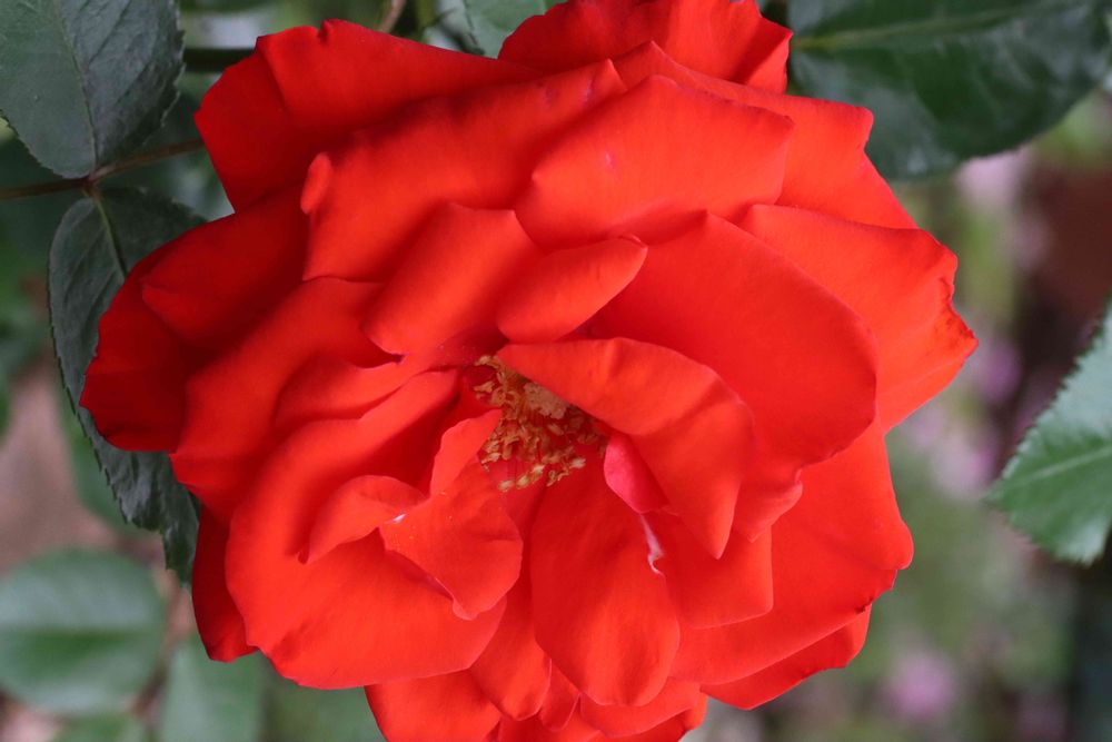 鉢植えのバラが咲いています。名前不明のオレンジのバラです。