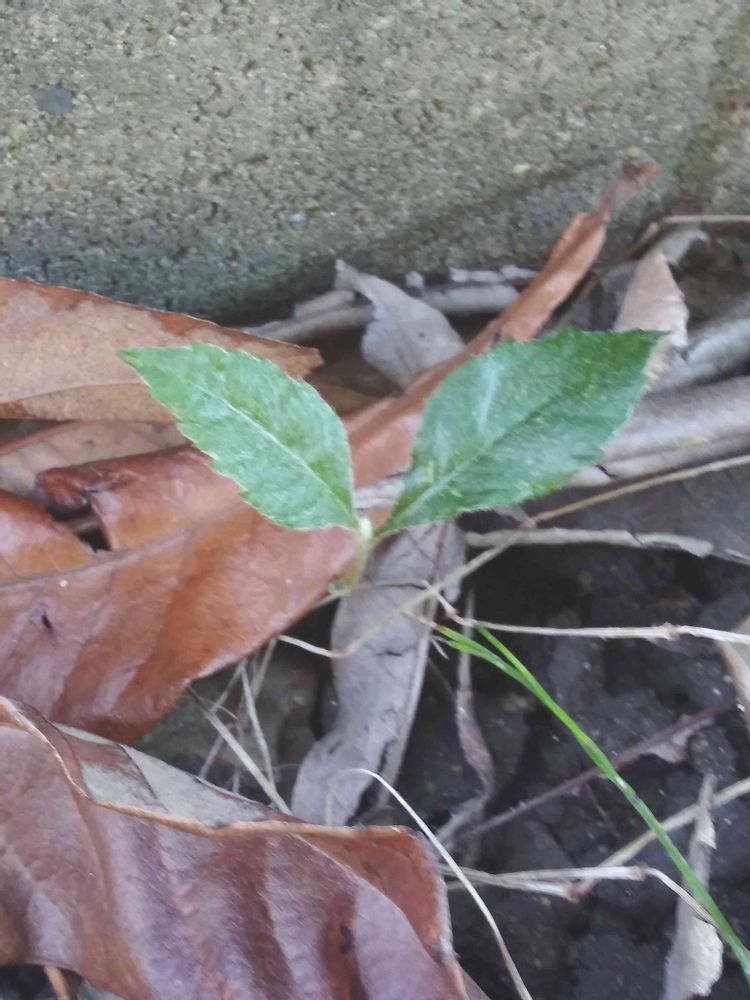 これがビワの発芽🧐 葉っぱがまだ小さいけどギザがあるの 茶色のも琵琶の葉っぱだよ 発芽の葉っぱの大きさが分かる?🤗 10年待ってね😓