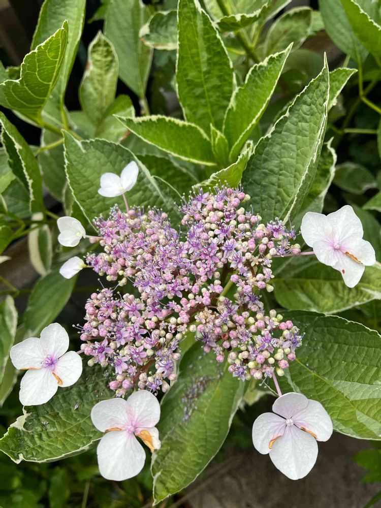 斑入りの葉っぱのがく紫陽花です。