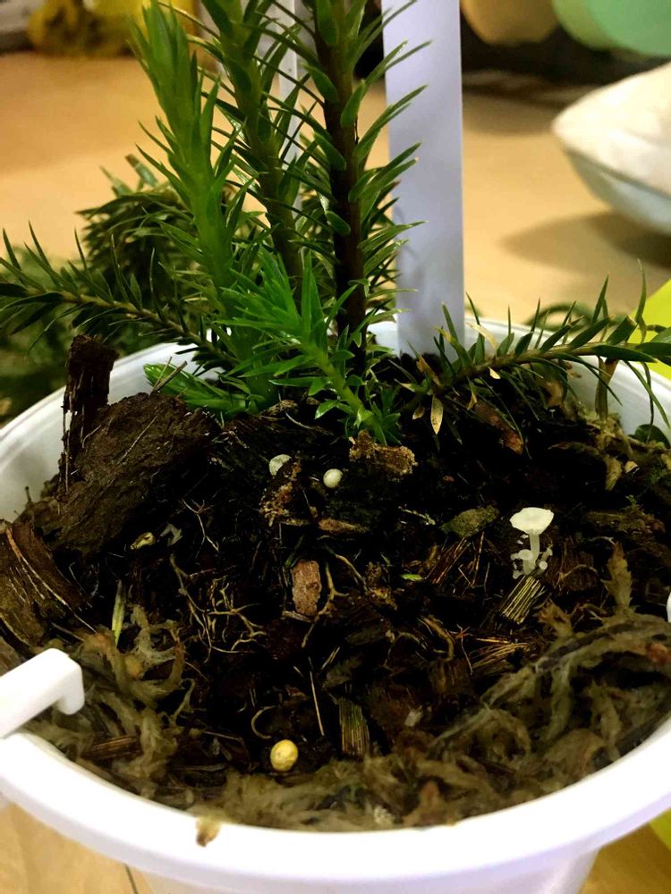 フペルジアにきのこ🍄が生えてました😳ちーさい白いきのこ。きのこって子供の頃は気持ち悪く感じていたんですが、今は何故か好きなんですよね。しいたけ、栽培した事もありますし。しいたけ栽培は楽しかったです!またやりたいけど、場所が😂