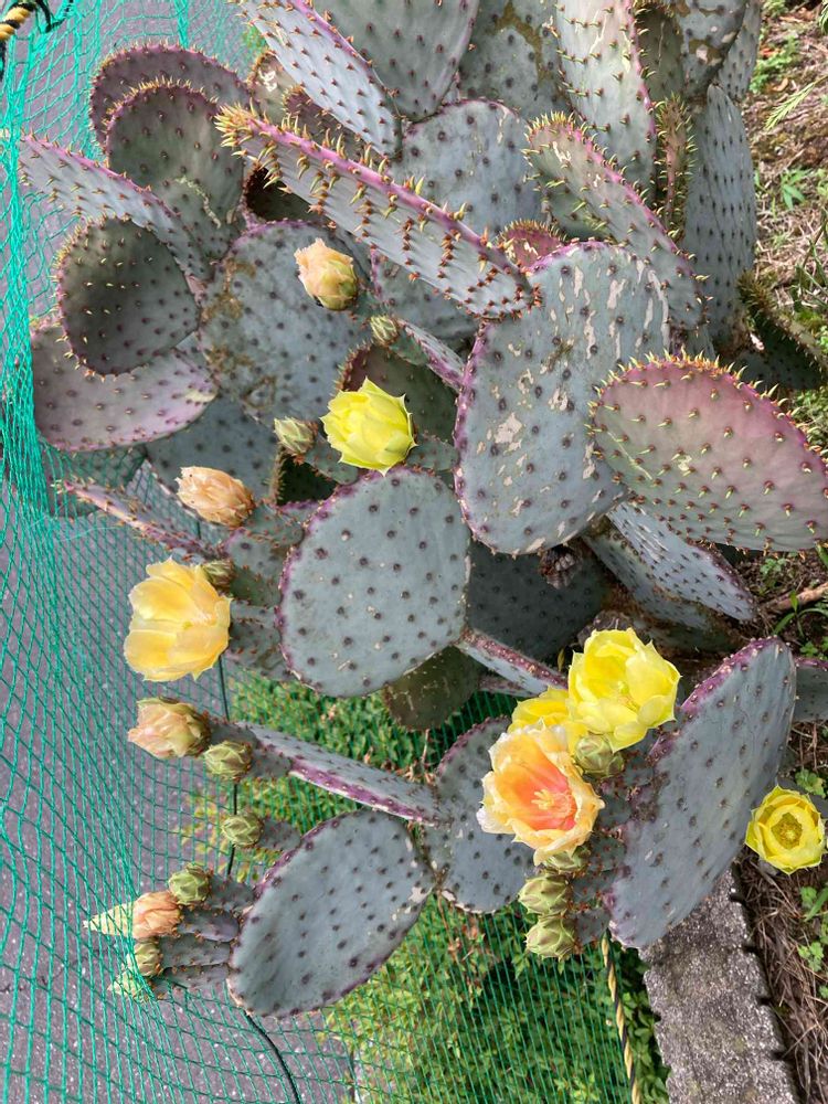 寒期に紅葉するウチワサボテン(サンタリタ)が開花しました。昨年は結実しませんでしたが、今年は何個か結実しそうです。