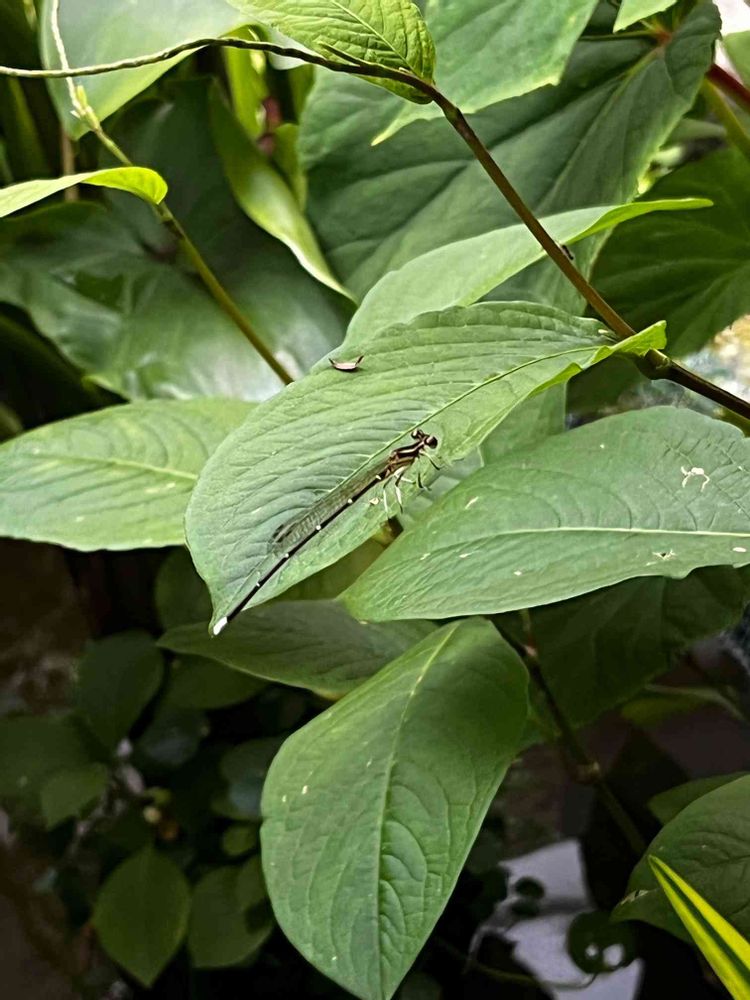 見覚えのあるふわふわ飛ぶ何者かに反応すると池の淵のミズヒキの葉っぱに止まったのでΣp📷ω・´)🎶