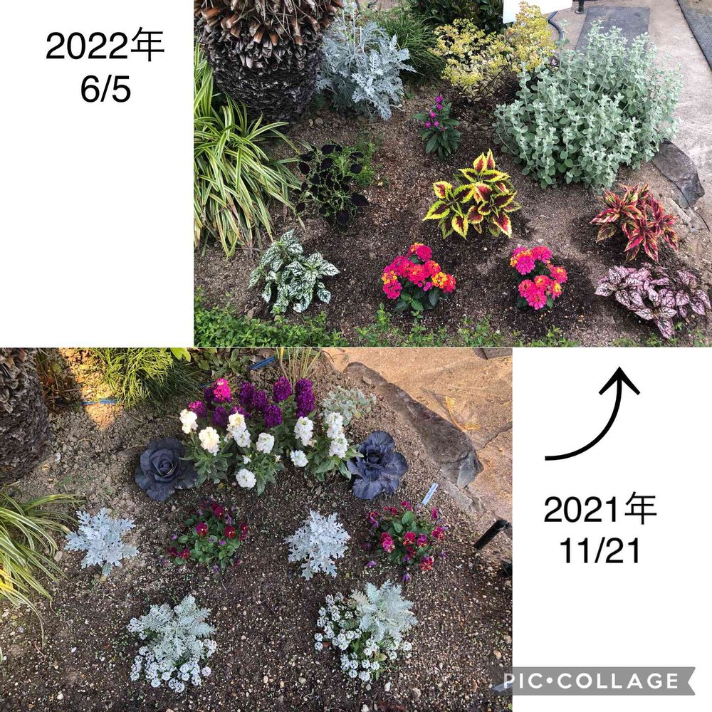 土日に冬〜春花壇→夏秋花壇に変えました。