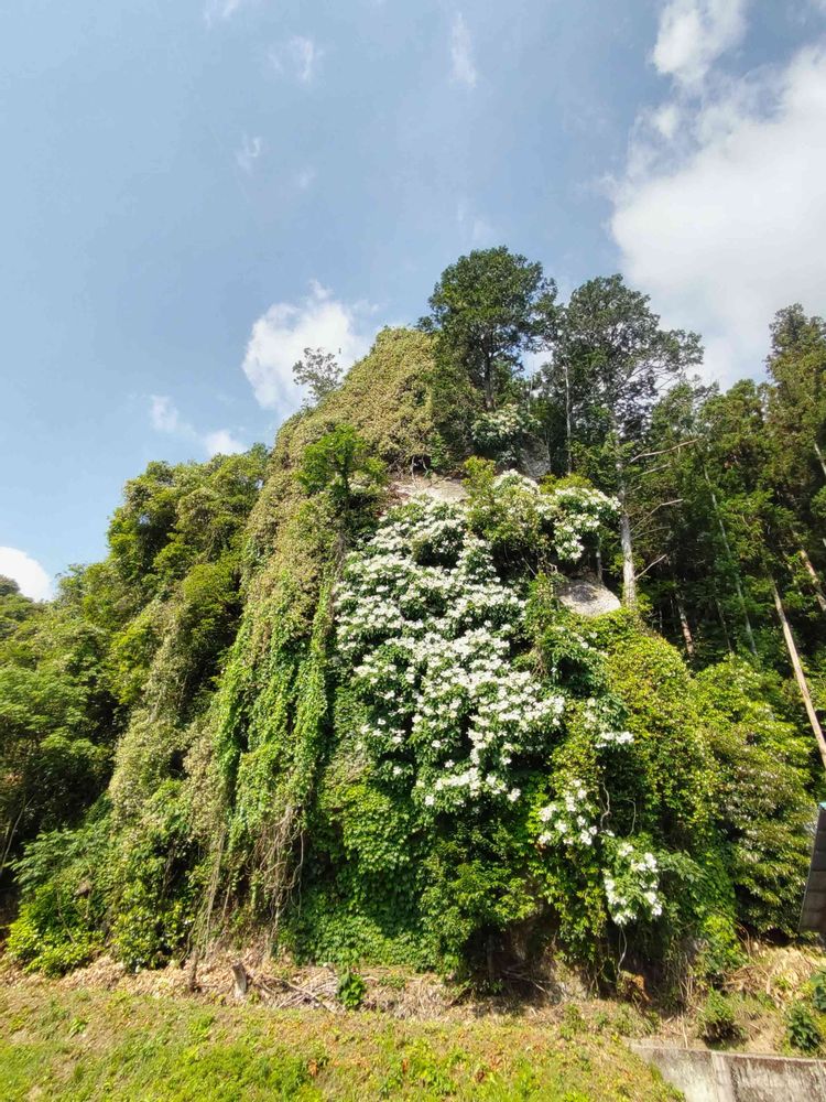 毎年裏の山に、イワガラミがブーケのように、岩山を彩ります😊