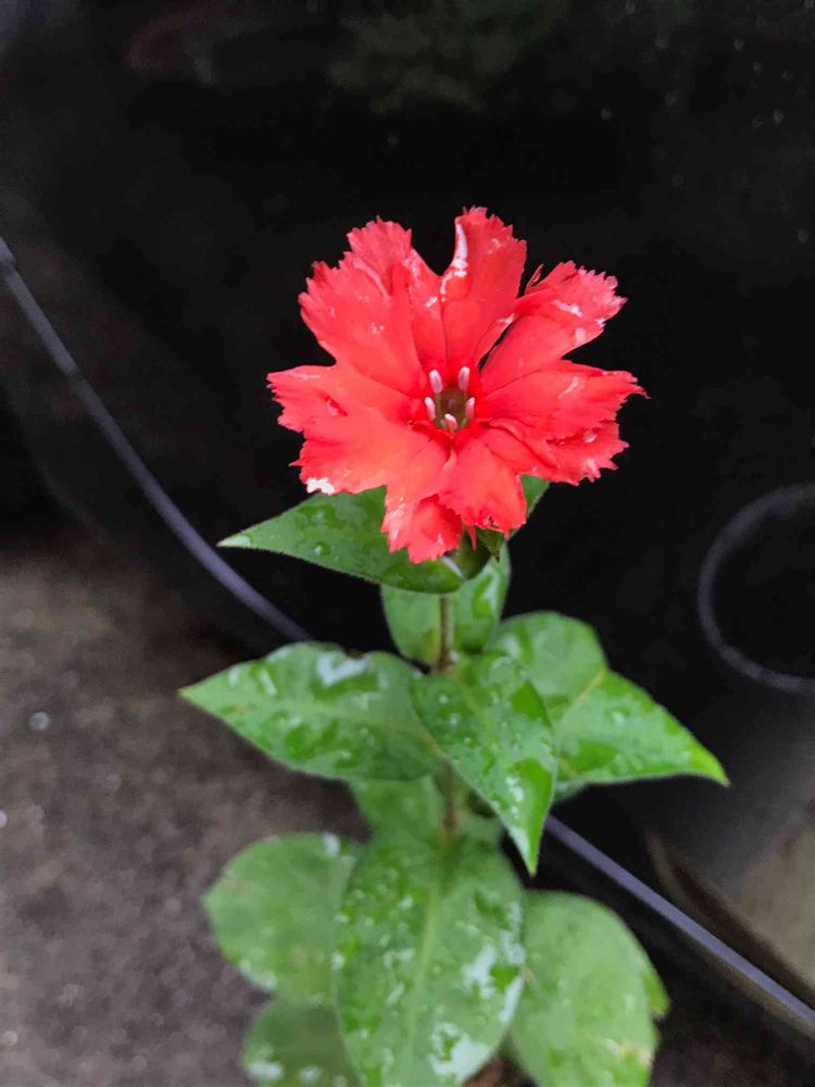 自然大好き派😘、兼園芸も好きかも派です😅。マツモトセンノウは4色あり、今日はセンノウ類の代表的な朱色です。今朝の早朝の雨により葉っぱは濡れていますが花は開花したばかりなので中心部は濡れていません。まるで写真を撮るのが分かっていたかのようです😊。