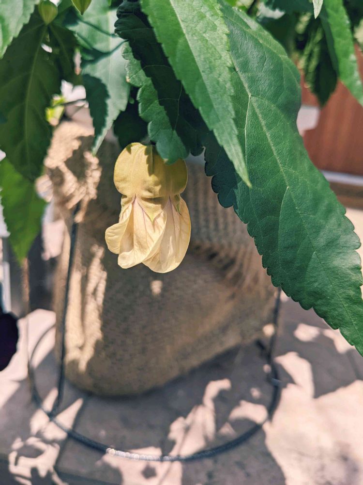 アブチロンの花が咲きだしてるんですが、どうしても葉の影になっちゃって花が見えません…